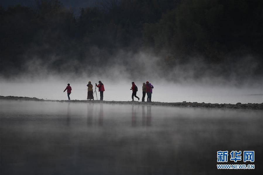 11月14日,游客在奇墅湖邊拍攝風(fēng)光。 初冬時(shí)節(jié),安徽省黃山市黟縣奇墅湖晨霧縹緲,別具韻味。新華社記者劉軍喜攝