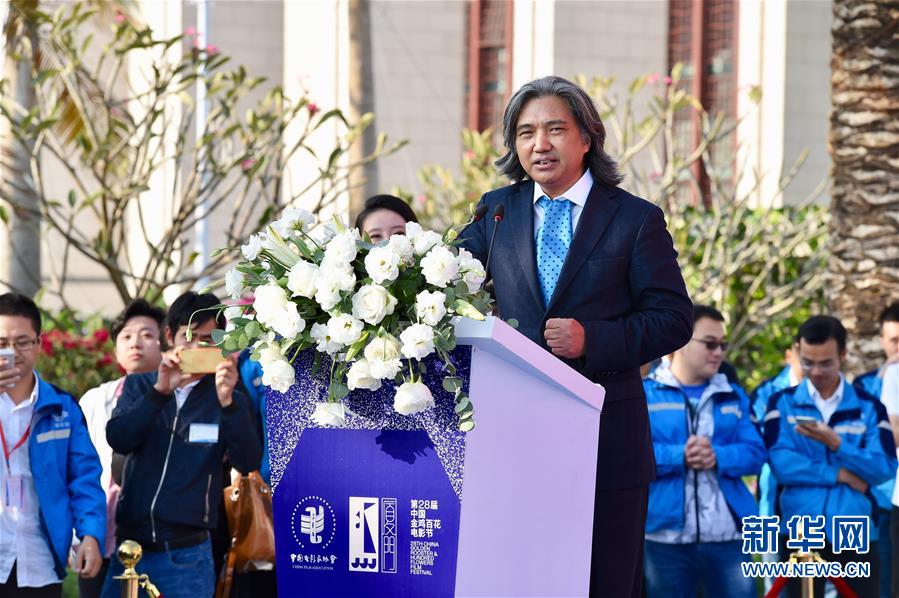 11月19日,金雞雕塑設(shè)計者、中國美術(shù)館館長吳為山在第28屆金雞百花電影節(jié)金雞雕塑揭幕儀式上致辭。新華社記者姜克紅攝