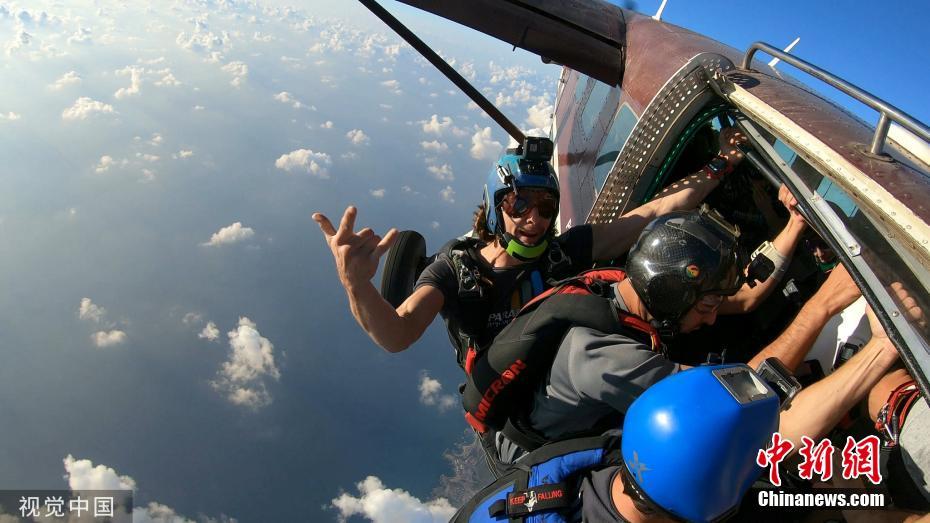11月20日訊,以色列一群跳傘者在從一萬三千英尺(約3962米)的高空進(jìn)行跳傘,墜落時盡情嬉戲、舞動和翻跟斗。圖片來源:視覺中國