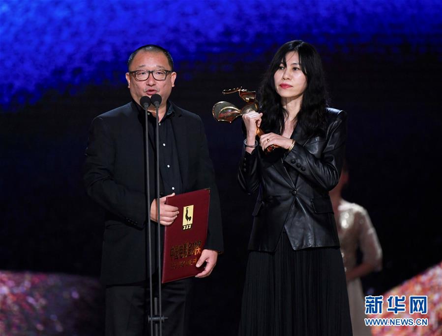 11月23日,電影《地久天長(zhǎng)》獲得最佳編劇獎(jiǎng),導(dǎo)演兼編劇王小帥(左)、編劇阿美在頒獎(jiǎng)儀式上。當(dāng)日,第32屆中國(guó)電影金雞獎(jiǎng)?lì)C獎(jiǎng)典禮在福建廈門舉行。新華社記者姜克紅攝