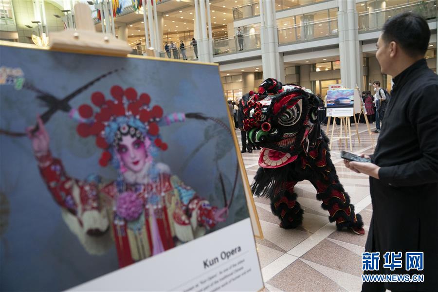 11月22日,在美國華盛頓,演員在“北京日”文化廟會活動上表演舞獅。作為中國北京和美國首都華盛頓締結友好城市35周年慶?;顒拥囊徊糠?,“北京日”文化廟會22日在華盛頓羅納德·里根大廈和國際貿易中心舉行。新華社記者劉杰攝
