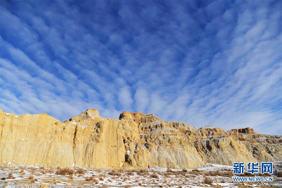 11月26日拍攝的新疆福??h烏倫古湖海上魔鬼城景區(qū)美景。福??h烏倫古湖海上魔鬼城景區(qū)位于新疆阿勒泰地區(qū)福??h吉力湖東岸,有著獨特的雅丹地貌和水域景觀,是當(dāng)?shù)刂穆糜蝿俚?。新華社記者沙達(dá)提攝