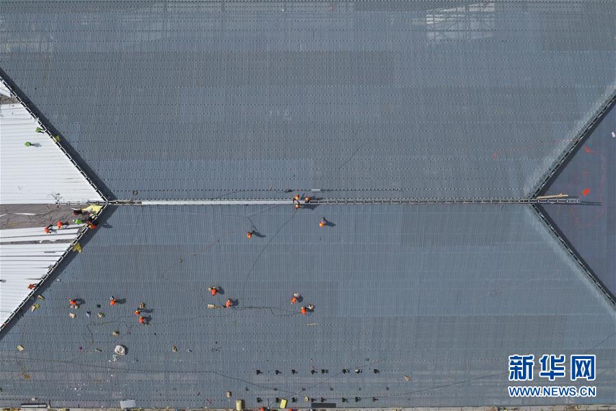 建設(shè)中的宣化北站(5月30日無人機(jī)拍攝)。京張高鐵宣化北站位于河北省張家口市宣化區(qū)北盆兒窯村附近,京張高鐵線路北側(cè),目前該站已完成站房主體結(jié)構(gòu)、鋼結(jié)構(gòu)、金屬屋面、清水混凝土雨棚結(jié)構(gòu)等施工內(nèi)容,全面進(jìn)入裝飾裝修施工階段。新華社記者邢廣利攝