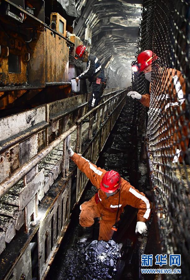 11月26日,在上灣煤礦12402綜采面內(nèi),工作人員對(duì)采煤機(jī)進(jìn)行檢修。