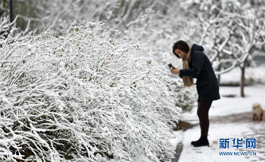 11月30日,一名市民在拍攝雪景。 新華社記者 李欣 攝