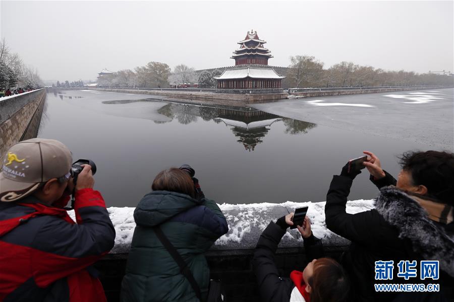 11月30日,人們?cè)谘┖蟮墓蕦m角樓附近拍照。 新華社記者 沈伯韓 攝
