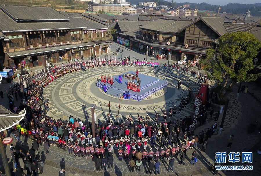 當(dāng)日,貴州省黔東南苗族侗族自治州丹寨縣迎來苗族傳統(tǒng)節(jié)日“祭尤節(jié)”,近千名身著節(jié)日盛裝的苗族群眾與游客齊聚丹寨萬達小鎮(zhèn),歡度傳統(tǒng)佳節(jié)。