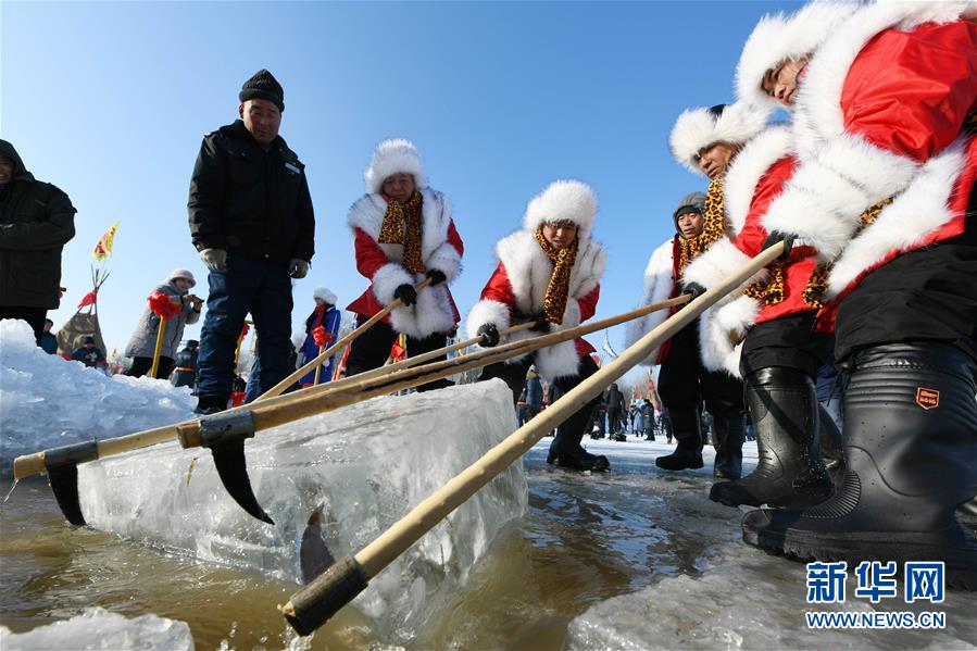 12月7日,人們在采冰節(jié)現(xiàn)場采“頭冰”。當(dāng)日,哈爾濱采冰節(jié)在冰封雪覆的松花江哈爾濱段江面上開幕,精彩的采冰儀式和表演吸引了眾多冰城市民和游客前來欣賞、互動。新華社記者王建威攝
