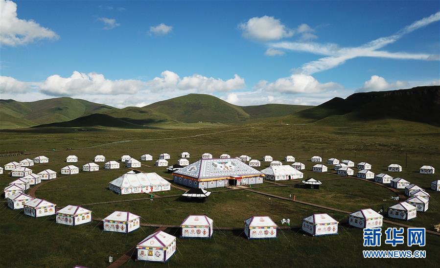 甘肅甘南藏族自治州碌曲縣尕海鎮(zhèn)尕秀村帳篷城度假區(qū)(2018年8月10日無人機(jī)拍攝)。新華社記者陳斌攝