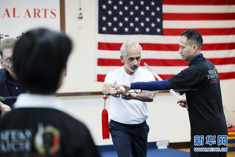 陳思坦在位于美國紐約長島的思坦太極武術(shù)中心指導(dǎo)學(xué)員練習(xí)太極劍(11月20日攝)。11月的紐約已進(jìn)入初冬,位于美國紐約長島的思坦太極武術(shù)中心依然一片紅火景象,學(xué)員們從5歲的孩童到80多歲的老人,操練著太極拳、太極劍、長拳等武術(shù)招式。這里的主人陳思坦、林旭夫婦,也從早忙到晚,精心指導(dǎo)每一位學(xué)員的一招一式。6歲習(xí)武,22歲成為中國全國冠軍,26歲獲得首個(gè)世界冠軍……直到30歲退役,陳思坦在運(yùn)動(dòng)員生涯中曾獲得過32次國內(nèi)外各類武術(shù)大賽冠軍。36歲那年,懷著以太極拳和中國武術(shù)為媒介向世界推廣中國文化的夢想,陳思坦到美國紐約尋找新的舞臺(tái)。經(jīng)過十多年的艱苦打拼,陳思坦夫婦目前在紐約長島、法拉盛和曼哈頓都開設(shè)了長期的課程,思坦太極注冊在編的各個(gè)年齡段的學(xué)員近千人,有些“高徒”現(xiàn)在自己也開班授課,將太極推向更多地方。陳思坦夫婦現(xiàn)在思考更多的是如何將太極和武術(shù)推廣給更多的美國人,并讓他們理解其中蘊(yùn)含的平衡、和諧的中國文化理念。他們創(chuàng)辦了紐約太極健身氣功活動(dòng)日,在各類學(xué)校和社區(qū)開設(shè)太極或者武術(shù)課程,并利用美國的亞太裔文化月和多元文化節(jié)舉行武術(shù)和太極表演和體驗(yàn)課程,讓更多美國人親眼看到、親身體會(huì)中國武術(shù)的魅力。從2011年起,他們還參與創(chuàng)辦了紐約太極大賽,如今已舉行九屆,吸引了美國、加拿大和中國國內(nèi)的隊(duì)伍參賽,影響力逐漸擴(kuò)大。新華社記者王迎攝
