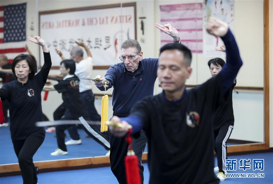 陳思坦在位于美國紐約長島的思坦太極武術(shù)中心帶學(xué)員練習(xí)太極劍(11月20日攝)。11月的紐約已進(jìn)入初冬,位于美國紐約長島的思坦太極武術(shù)中心依然一片紅火景象,學(xué)員們從5歲的孩童到80多歲的老人,操練著太極拳、太極劍、長拳等武術(shù)招式。這里的主人陳思坦、林旭夫婦,也從早忙到晚,精心指導(dǎo)每一位學(xué)員的一招一式。6歲習(xí)武,22歲成為中國全國冠軍,26歲獲得首個世界冠軍……直到30歲退役,陳思坦在運(yùn)動員生涯中曾獲得過32次國內(nèi)外各類武術(shù)大賽冠軍。36歲那年,懷著以太極拳和中國武術(shù)為媒介向世界推廣中國文化的夢想,陳思坦到美國紐約尋找新的舞臺。經(jīng)過十多年的艱苦打拼,陳思坦夫婦目前在紐約長島、法拉盛和曼哈頓都開設(shè)了長期的課程,思坦太極注冊在編的各個年齡段的學(xué)員近千人,有些“高徒”現(xiàn)在自己也開班授課,將太極推向更多地方。陳思坦夫婦現(xiàn)在思考更多的是如何將太極和武術(shù)推廣給更多的美國人,并讓他們理解其中蘊(yùn)含的平衡、和諧的中國文化理念。他們創(chuàng)辦了紐約太極健身氣功活動日,在各類學(xué)校和社區(qū)開設(shè)太極或者武術(shù)課程,并利用美國的亞太裔文化月和多元文化節(jié)舉行武術(shù)和太極表演和體驗(yàn)課程,讓更多美國人親眼看到、親身體會中國武術(shù)的魅力。從2011年起,他們還參與創(chuàng)辦了紐約太極大賽,如今已舉行九屆,吸引了美國、加拿大和中國國內(nèi)的隊(duì)伍參賽,影響力逐漸擴(kuò)大。新華社記者王迎攝