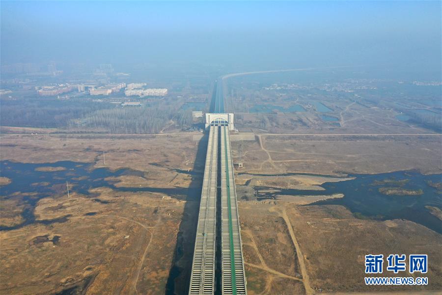 這是12月9日無(wú)人機(jī)拍攝的南水北調(diào)中線總干渠沙河渡槽工程。新華社記者馮大鵬攝