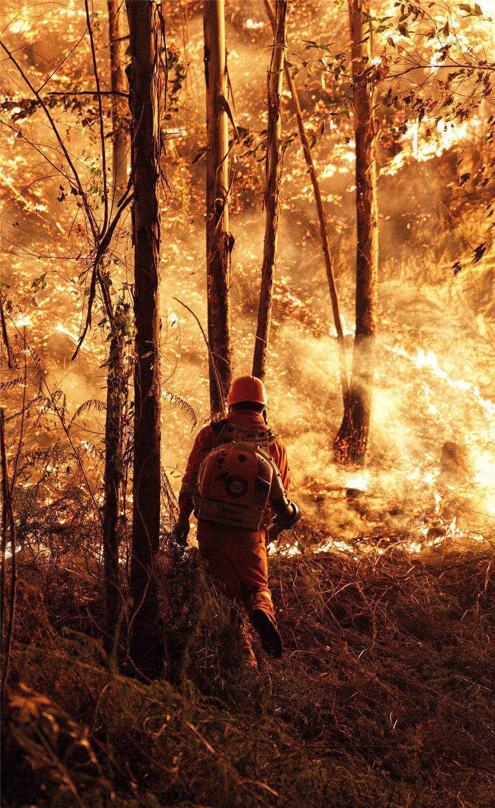 2019年12月7日凌晨一時(shí)多,廣東佛山,來自英德東華鎮(zhèn)的消防員們摸黑上山作業(yè)。經(jīng)過大約一個(gè)小時(shí)的奮戰(zhàn)后,山頭明火得到有效控制。