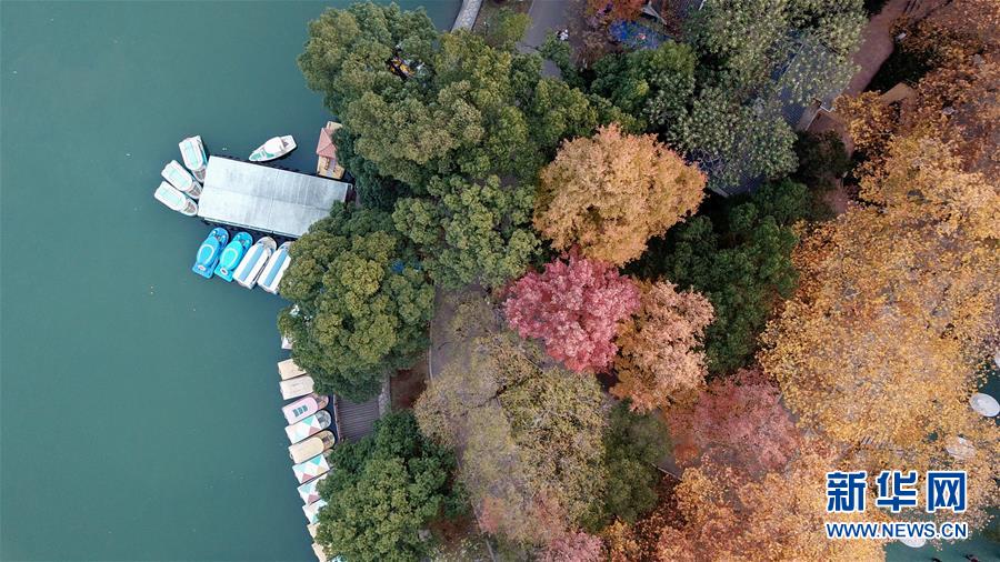 12月10日,游船??吭诤狭沂抗珗@年嘉湖湖畔(無人機(jī)拍攝)。新華社記者陳澤國攝