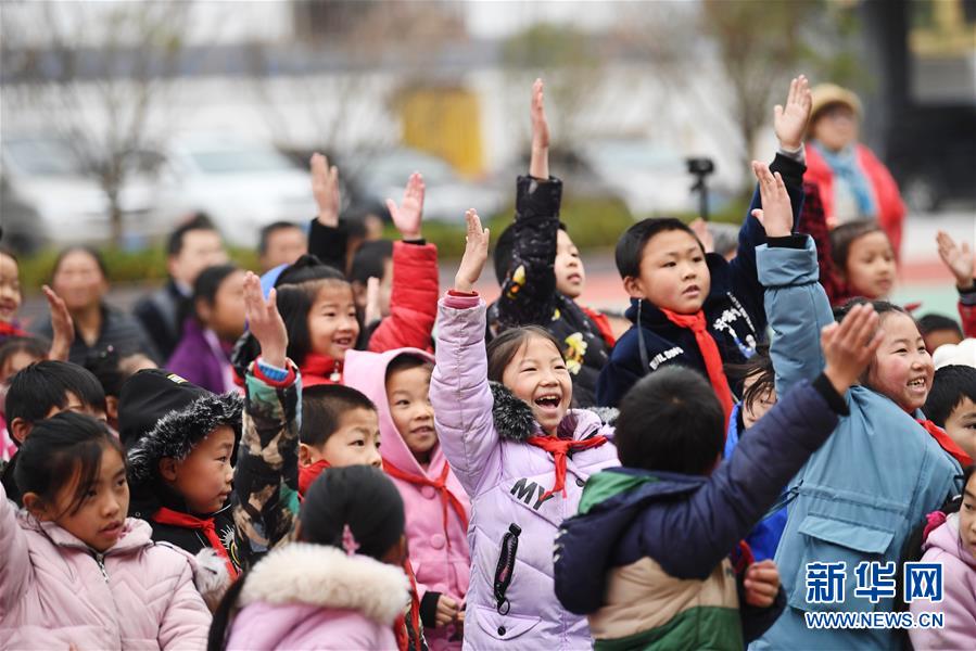 12月12日,中益鄉(xiāng)小學(xué)的同學(xué)們在文藝演出現(xiàn)場與演員互動(dòng)。新華社記者 王全超 攝