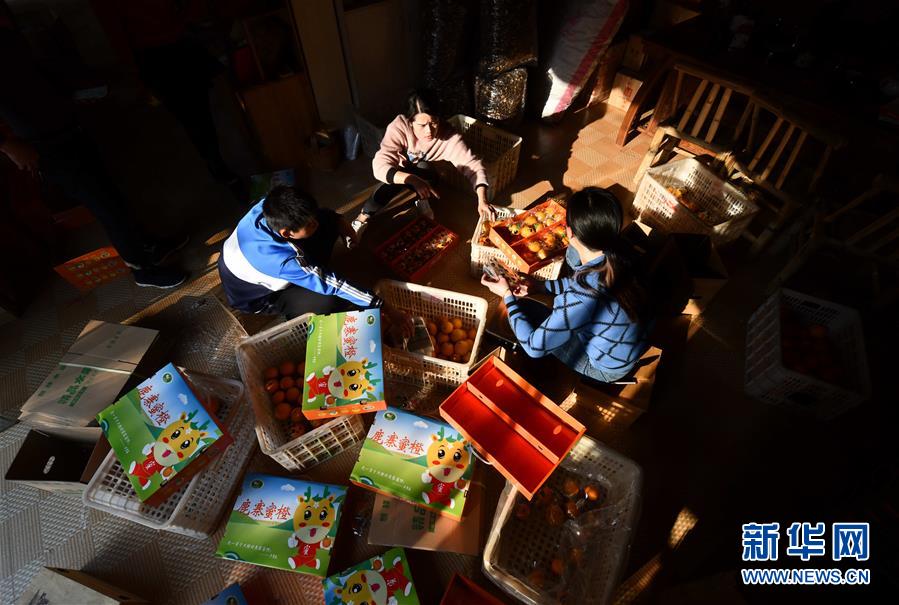 12月13日,廣西柳州市鹿寨縣一家土特產銷售公司員工在包裝蜜橙,準備通過電商銷售。新華社記者 黃孝邦 攝