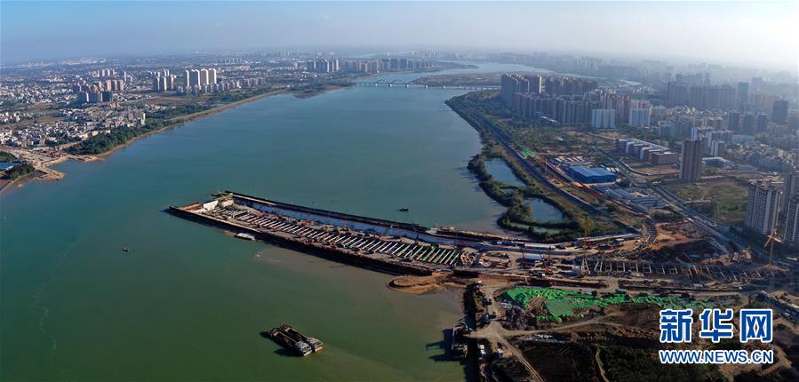 正在施工的海口文明東越江通道項目(12月14日無人機拍攝)。 ??谖拿鳀|越江通道項目是連接??谥鞒菂^(qū)和江東新區(qū)的重要紐帶,2018年底開工,全長4.38千米,其中隧道段2.72千米。據(jù)了解,目前項目總工程量已過半,將力爭在2020年4月份建成并實現(xiàn)功能性通車。 新華社記者 郭程 攝