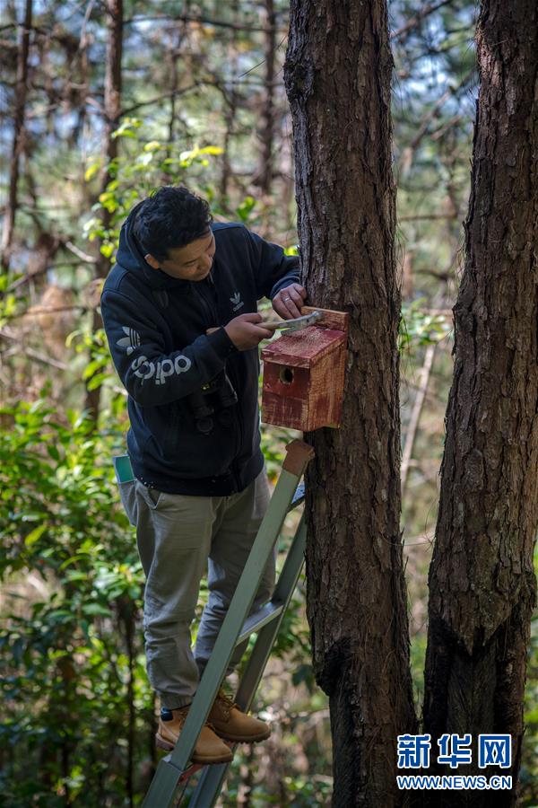 羅康在哀牢山的松樹林里查看上一批人工巢箱的鳥類入住情況(12月12日攝)。 31歲的羅康是云南省瀾滄縣人,從事鳥類生態(tài)學(xué)研究已有8年時(shí)間。作為中科院鳥類繁殖學(xué)的在讀博士,羅康離開城市,一頭扎進(jìn)哀牢山深處,以森林為家,與鳥兒為伴。 羅康在研究過程中發(fā)現(xiàn),由于松林內(nèi)天然樹洞很少,導(dǎo)致食蟲鳥類(主要為洞巢鳥)的繁衍與生存質(zhì)量受到較大影響。查閱大量資料后,他決定學(xué)習(xí)西方國家應(yīng)用比較廣泛、已有100多年歷史的人工巢箱,為這些鳥兒搭建“別墅”。 目前,羅康已安置人工鳥巢500余個(gè),共有遠(yuǎn)東山雀、綠背山雀、黃頰山雀等7種鳥類入住,總體入住率約25%。他還在部分人工巢箱里裝上攝像頭,用于研究鳥類的生活習(xí)性。 “通過對人工鳥巢里的視頻錄像進(jìn)行分析,我們發(fā)現(xiàn)入住鳥類以松毛蟲喂食幼鳥的比例非常高?!绷_康表示,安置人工鳥巢不僅能幫助鳥類在森林中安家落戶、繁衍生息,也能有效防治森林病蟲害。明年一月底前,他將再安置500個(gè)人工巢箱。 新華社記者 胡超 攝