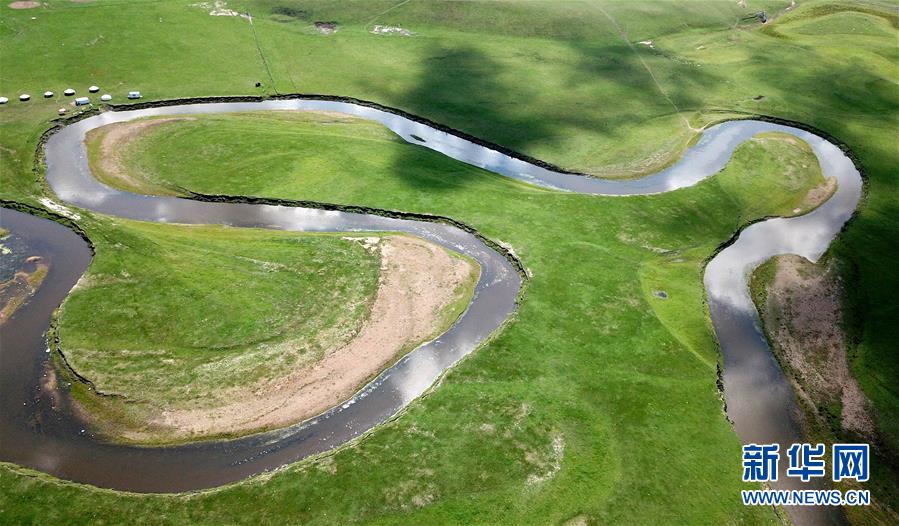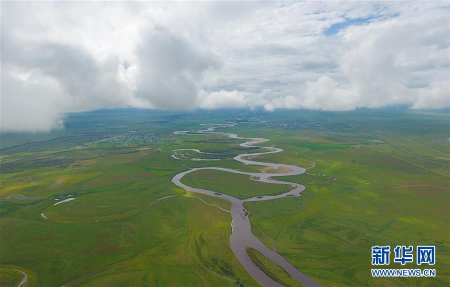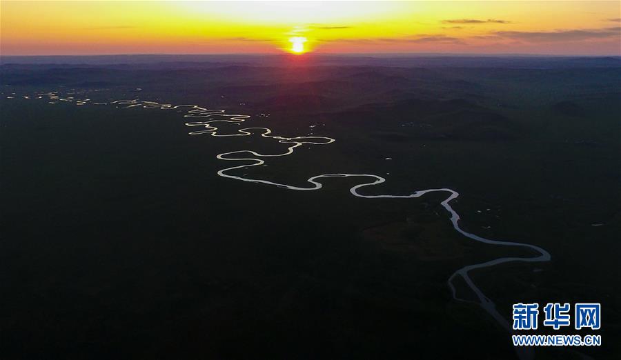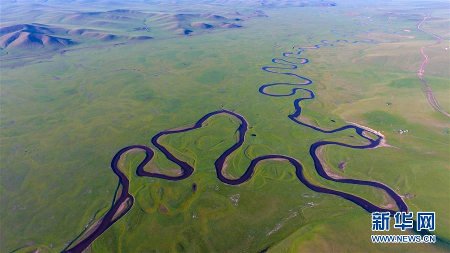 8月26日無人機拍攝的伊敏河(全景照片)。伊敏河流經(jīng)呼倫貝爾草原。新華社記者沈伯韓攝