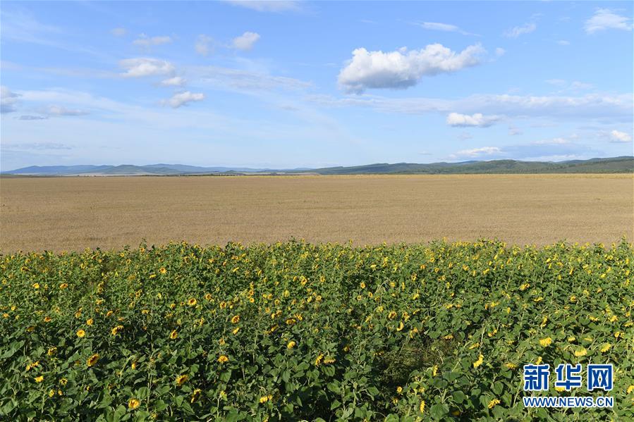 8月28日無人機拍攝的呼倫貝爾市額爾古納市室韋農(nóng)牧場的田園風(fēng)光。新華社記者劉磊攝