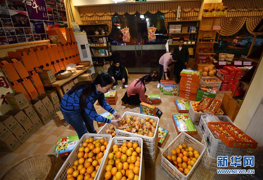 李柳萍和員工在特產(chǎn)館里工作(12月14日攝)。新華社記者黃孝邦攝
