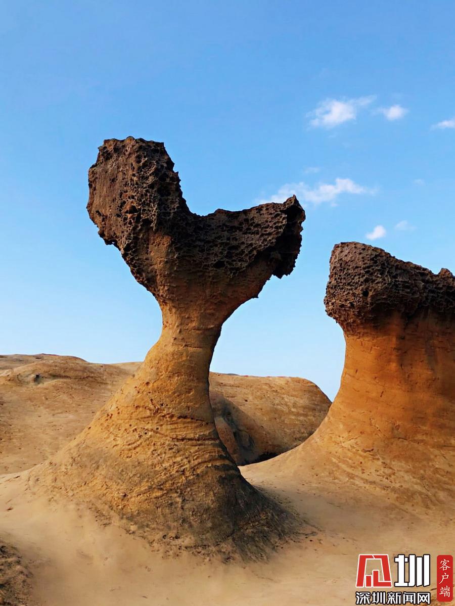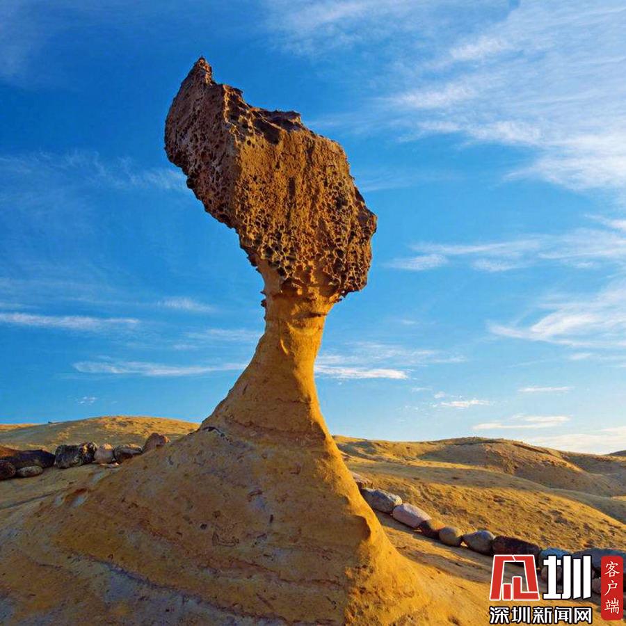 野柳地質(zhì)公園(Yehliu Geopark),位于臺灣新北市萬里區(qū),野柳是突出海面的岬角(大屯山系),長約1700公尺,由于海蝕風(fēng)化及地殼運(yùn)動(dòng)等作用,造就了海蝕洞溝、蜂窩石、燭狀石、豆腐石、蕈狀巖、壺穴、溶蝕盤等綿延羅列的奇特景觀。孫遜攝