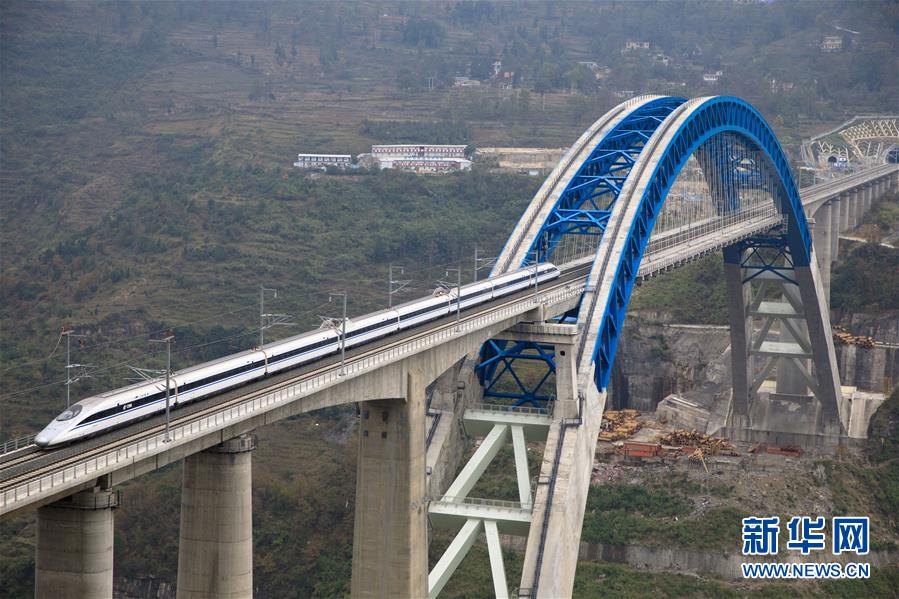 12月2日,一輛試驗(yàn)列車駛過成貴高鐵鴨池河特大橋。當(dāng)日,正在進(jìn)行聯(lián)調(diào)聯(lián)試的成貴高鐵進(jìn)入全線拉通空載模擬運(yùn)行階段,試驗(yàn)列車將在成都到貴陽區(qū)間內(nèi)全線路運(yùn)行。線路全長650公里的成貴高鐵是我國“八縱八橫”高速鐵路網(wǎng)的重要組成部分,設(shè)計(jì)時(shí)速為250公里。新華社記者劉續(xù)攝