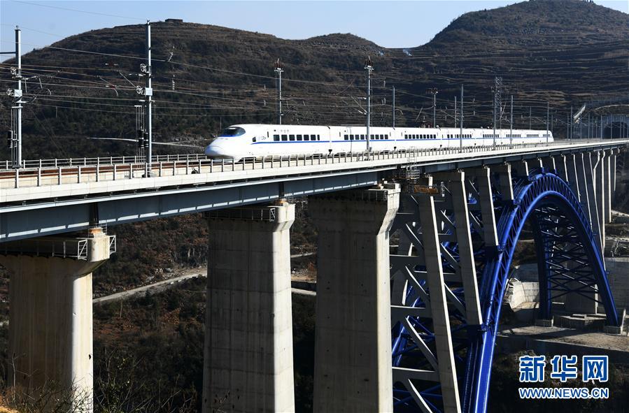 12月16日,一列動(dòng)車(chē)組列車(chē)從成貴高鐵西溪河大橋上駛過(guò)。新華社記者楊文斌攝