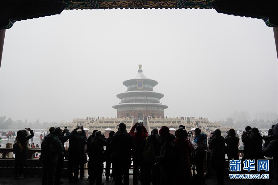 2019年11月30日,北京,初雪過(guò)后,天壇公園銀裝素裹,白雪古建相互映襯,景色迷人。天壇公園里觀雪賞景的市民絡(luò)繹不絕。喬健/千龍圖像/視覺(jué)中國(guó)