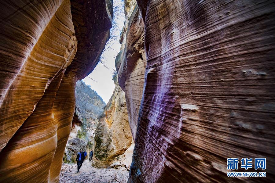 12月17日,游人在志丹縣雙河鎮(zhèn)毛項峽谷內游覽。新華社記者陶明攝