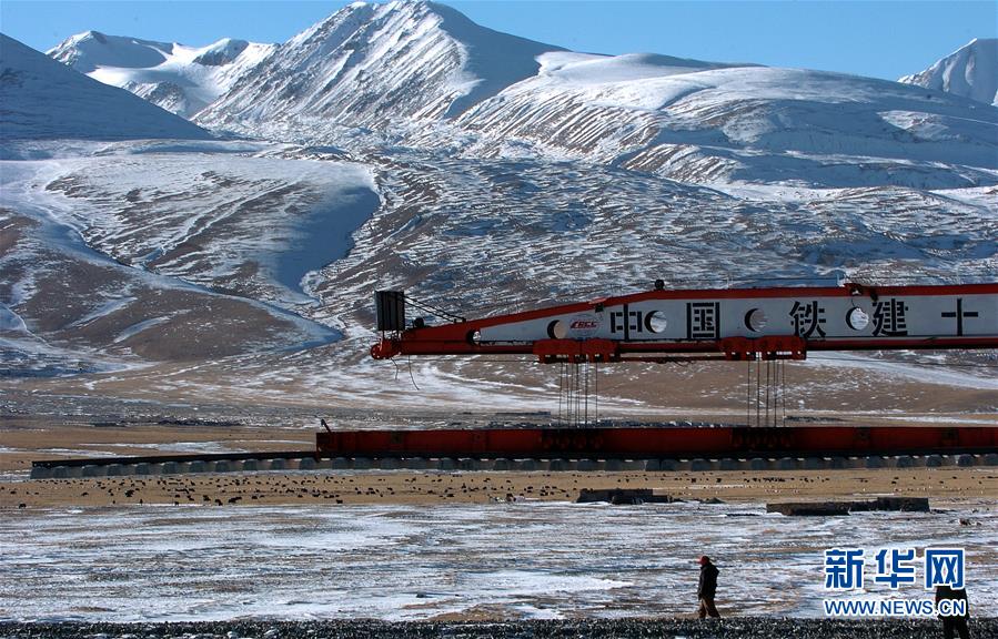 青藏鐵路在鋪軌建設(shè)中(2004年12月5日攝)。新華社記者覺果攝