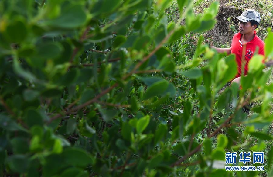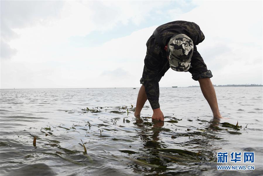 海南新盈紅樹(shù)林國(guó)家濕地公園巡護(hù)員兼監(jiān)測(cè)員羅理想在濕地公園內(nèi)的灘涂上做監(jiān)測(cè)(11月27日攝)。 羅理想2006年起開(kāi)始參與紅樹(shù)林濕地的保護(hù)工作,近年來(lái)他參加了很多關(guān)于濕地的培訓(xùn)。2016年,羅理想在工作中監(jiān)測(cè)到極危鳥(niǎo)種勺嘴鷸,當(dāng)時(shí)有許多媒體做了報(bào)道,后來(lái)他又配合專(zhuān)家在濕地公園里發(fā)現(xiàn)了拉氏紅樹(shù),“那個(gè)時(shí)候感覺(jué)自己的工作很有價(jià)值”,羅理想說(shuō)。 新華社發(fā)