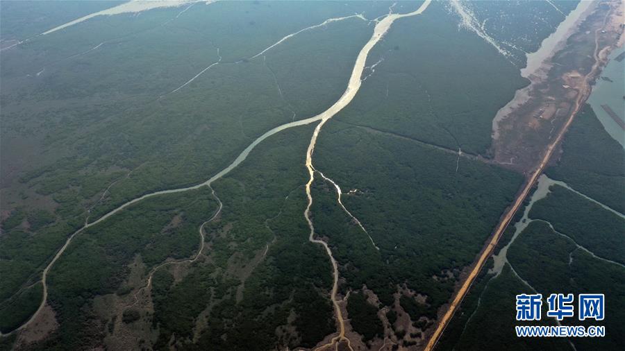 12月21日無(wú)人機(jī)拍攝的廣西合浦縣黨江鎮(zhèn)更螺圍出??谝痪啊6?,廣西廉州灣海域風(fēng)光別致。新華社記者張愛(ài)林?jǐn)z