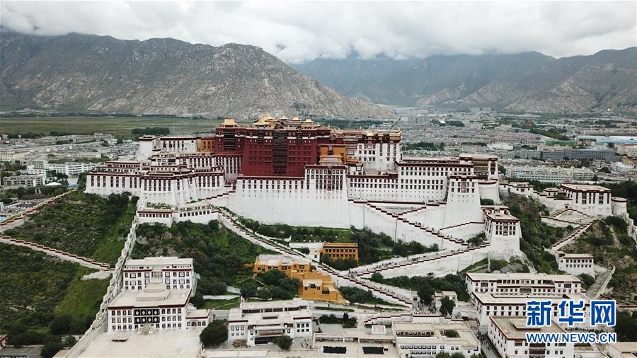 8月10日無(wú)人機(jī)拍攝的布達(dá)拉宮。新華社記者王益亮攝