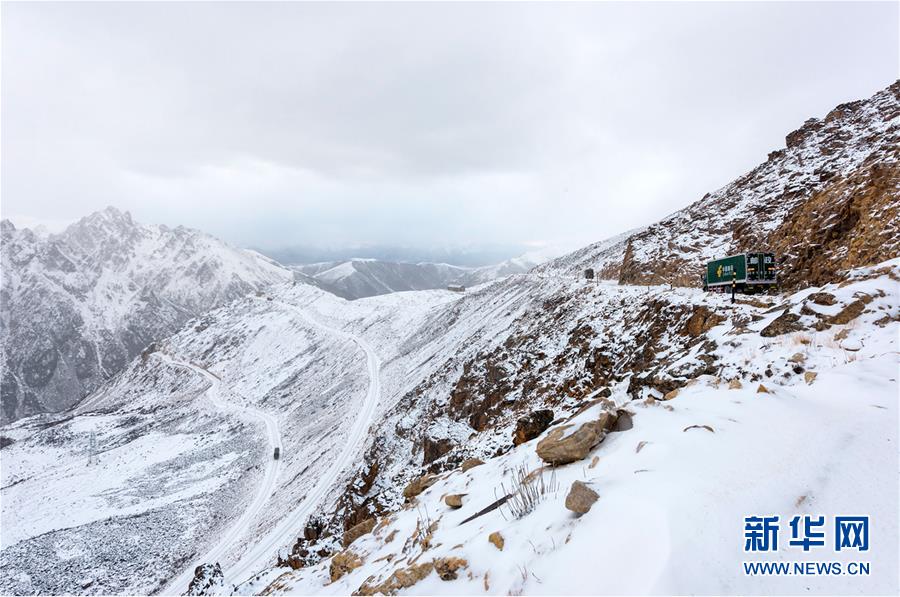 這是318國(guó)道剪子彎山段,大雪過后銀裝素裹(10月17日無人機(jī)拍攝)。新華社記者江宏景攝