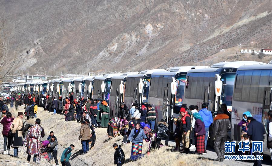 12月23日,貢嘎縣群眾迎接新來的村民。新華社記者覺果攝
