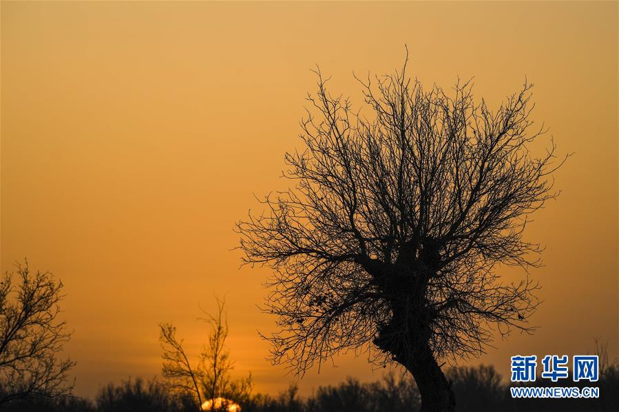 這是在依明家附近拍攝的位于塔克拉瑪干沙漠腹地的胡楊(3月18日攝)。新華社記者胡虎虎攝