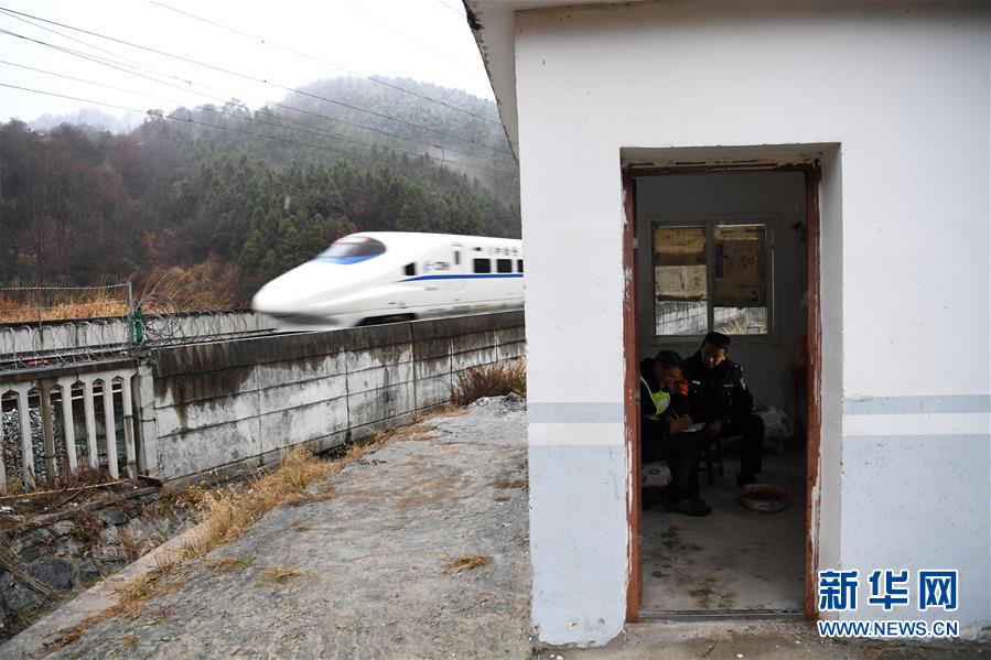 12月18日,常曉龍(右)和輔警在治安崗?fù)だ锝涣鳌P氯A社記者劉軍喜攝