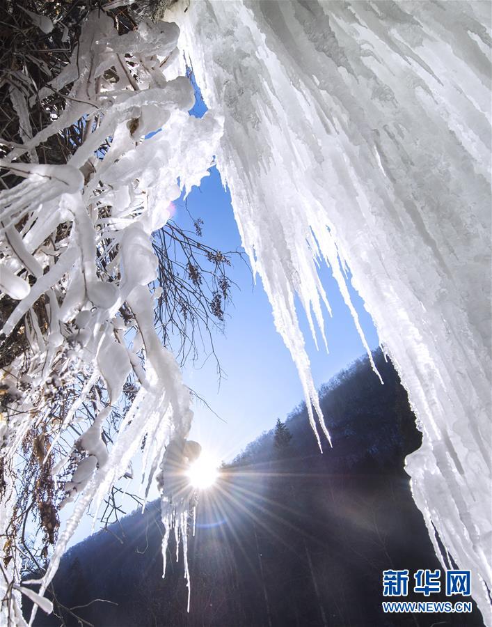 這是在吉林省長(zhǎng)白縣十五道溝望天鵝景區(qū)拍攝的懸于石壁間的冰凌(1月3日攝)。新華社記者許暢攝