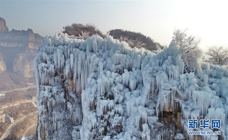 這是平山縣沕沕水景區(qū)的冰瀑(12月25日無人機攝)。新華社記者楊世堯攝