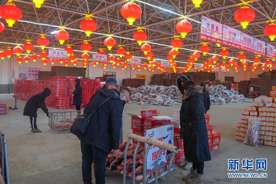 12月27日,在查干湖漁場(chǎng)超市,消費(fèi)者選購(gòu)查干湖魚(yú)。新華社記者張楠攝