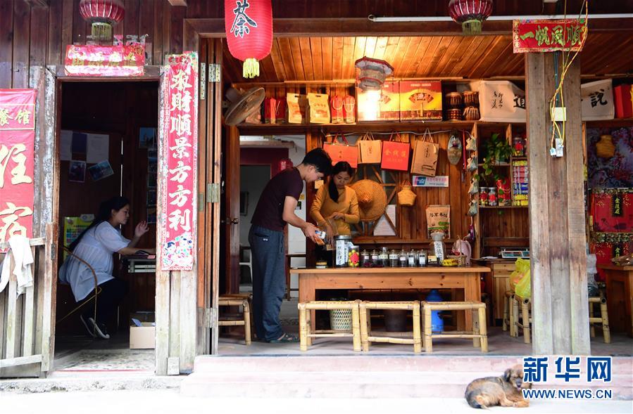 在龍巖市永定區(qū)湖坑鎮(zhèn)高頭鄉(xiāng)高北村,村民江重生(左二)和愛人張妙丹一起在挑揀茶葉(5月4日攝)。他們夫妻原本在廈門打工,如今返鄉(xiāng)從事涉旅行業(yè),開設(shè)咖啡屋和茶藝店,同時(shí)還經(jīng)營民宿和餐飲服務(wù)。新華社記者魏培全攝