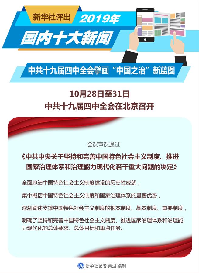 圖表:新華社評(píng)出2019年國(guó)內(nèi)十大新聞 新華社記者 秦迎 編制