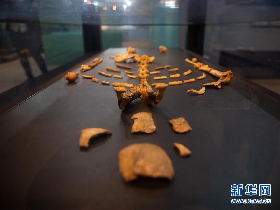 非洲有著悠久的歷史和燦爛的文化。走進(jìn)非洲的博物館,探尋人類文明的起源和發(fā)展步伐。 埃塞俄比亞國家博物館位于首都亞的斯亞貝巴,以收藏有“人類祖母”之稱的古人類化石露西聞名。1974年,考古學(xué)家在埃塞俄比亞一處谷地發(fā)現(xiàn)了屬于一個(gè)古人類女性的大量骨骼化石,化石占完整骨骼的40%,研究人員用一首甲殼蟲樂隊(duì)的歌將其命名為露西。 這是2019年5月17日在埃塞俄比亞首都亞的斯亞貝巴的埃塞俄比亞國家博物館拍攝的露西化石展品。 新華社記者 呂帥 攝