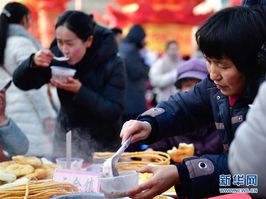 1月2日,兩位市民在閬中古城貢院廣場吃臘八粥。 當(dāng)日是農(nóng)歷臘月初八臘八節(jié),四川閬中古城舉行“萬人同品臘八粥”活動,當(dāng)?shù)鼐用窈捅姸嘤慰驮谪曉簭V場免費享用臘八粥。 新華社記者 江宏景 攝