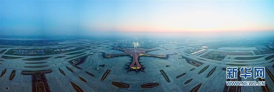 這是6月14日無人機(jī)拍攝的北京大興國際機(jī)場(全景拼接照片)。新華社記者才揚(yáng)攝