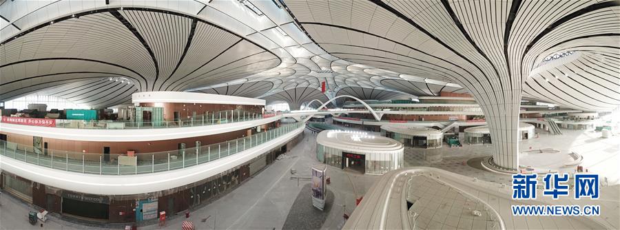 這是6月14日無人機拍攝的北京大興國際機場航站樓內(nèi)景(全景拼接照片)。新華社記者才揚攝