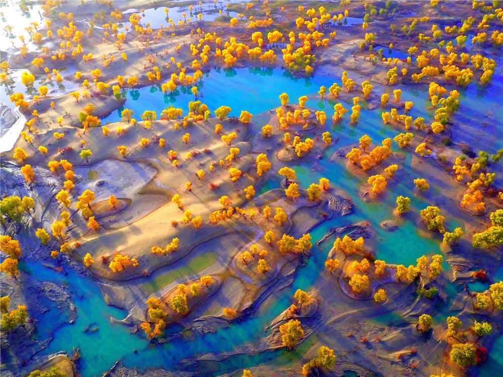 2016年11月2日,航拍的新疆塔里木河尉犁縣段胡楊林。胡熱/視覺(jué)中國(guó)