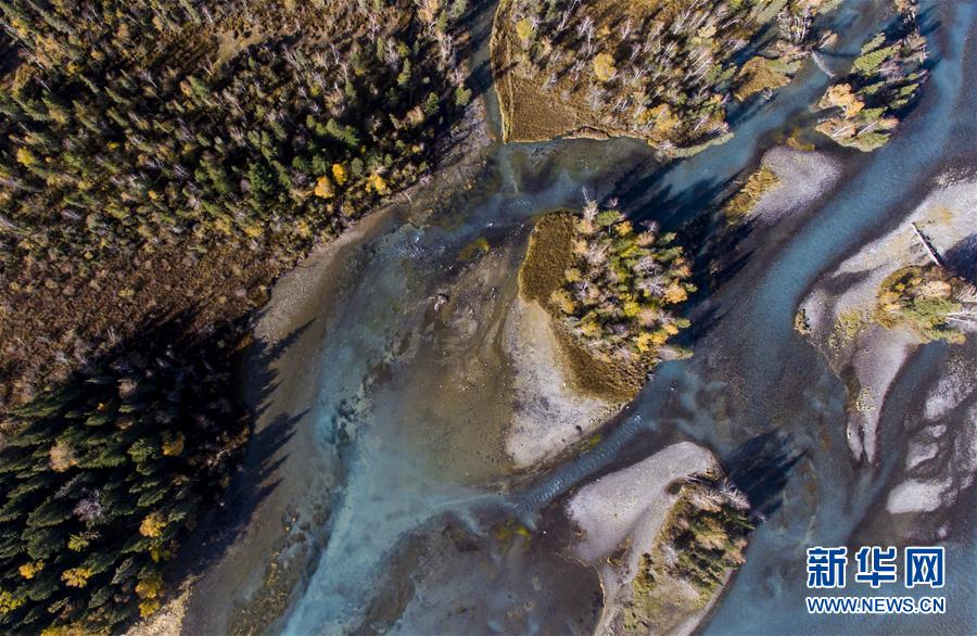 9月24日無(wú)人機(jī)拍攝的喀納斯景區(qū)風(fēng)光。新華社記者王菲攝