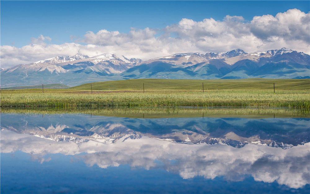 2019年7月11日,新疆巴音郭楞獨(dú)庫(kù)公路邊的天山倒影。黃光浩/視覺(jué)中國(guó)